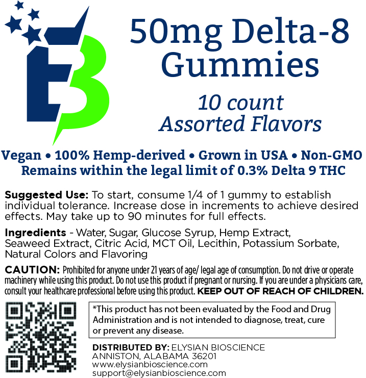 Vegan. 100% Hemp-derived. Grown in USA. Non-GMO. Remains within the legal limit of 0.3% Delta 9 THC.